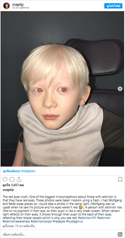 The next step the couple took was to meet an optometrist and genetic specialists to help with an official diagnosis. It was made official; Redd had Oculocutaneous Albinism Type one (OCA1) a condition which affects 1 in 17,000 people globally.
